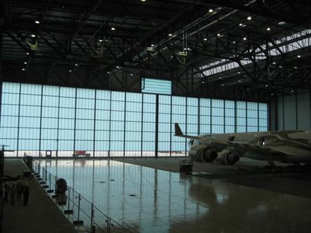 Die Halle bietet Platz für gleichzeitig 1 Airbus 380, 1 Jumbo-Jet Boeing 747 und 2 Airbus 320
